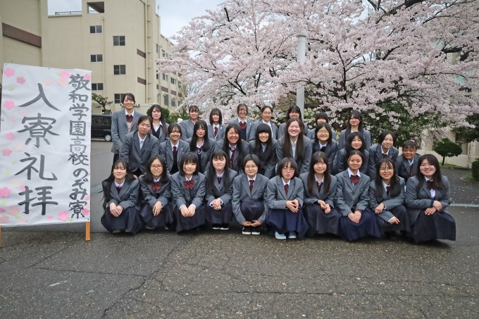 4月7日(火)「第59回生 入寮礼拝」を執り行いました。新入生20名を加えて、のぞみ寮生60名の新しい歩みが始まりました。ここ数年では珍しく雨の中の入寮となりました。毎年恒例の新入生歓迎でウェルカムボードが濡れないように気をつけていたり、雨に打たれながら新入生の荷物を運び入れたりする姿がありました。しかし、寮生の表情は晴れやかで心温まる瞬間に、新入生も保護者の方も安心したのではないでしょうか?