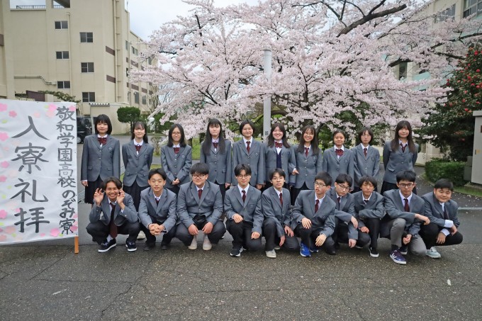 この日、ずっと降り続けていた雨。入寮礼拝・保護者会入会式が終わり、桜の木の下で集合写真を撮影するか迷っていましたが、最終判断の瞬間に雨が止んでくれました。あいにくの雨なのか、恵みの雨なのか、それは私たちの心次第で捉え方が変わります。荷物や制服が濡れてしまうのは不快な想いをするかもしれません。しかし、捉え方を変えることもできます。新しい歩みが始まる日に雨が降ること、それはひとりずつに与えられている「美しき種子」に生命の水が与えられたことを意味するのかもしれません。「人皆に美しき種子(たね)あり 明日何が咲くか」安積得也さんの詩のように、仲間と過ごす中でどのような花を咲かせていくのでしょうか?それは誰も想像できない、やってみないとわからないのです。挑戦や失敗など様々な経験をしていく中で、その人らしい花を咲かせてくれることでしょう。